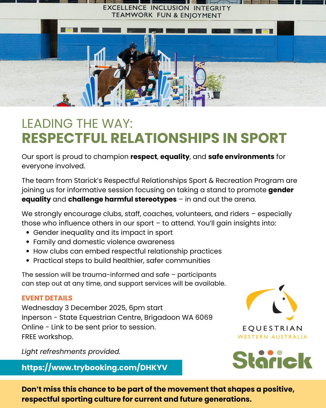 Don’t miss this chance to be part of the movement that shapes a positive, respectful sporting culture for current and future generations.