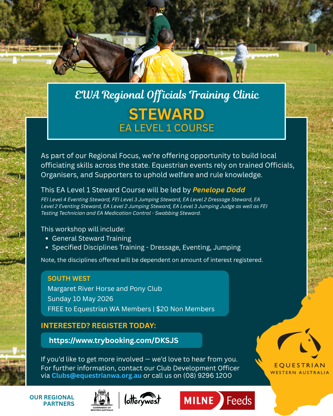 As part of our Regional Focus, we’re offering opportunity to build local officiating skills across the state. Equestrian events rely on trained Officials, Organisers, and Supporters to uphold welfare and rule knowledge.