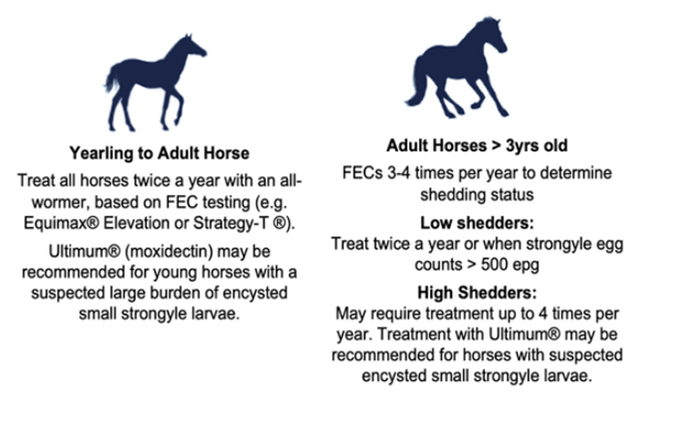 - Focus on Strongyles: Adult horse strategies should focus on these parasites, which can be tolerated in relatively large burdens without clinical disease.