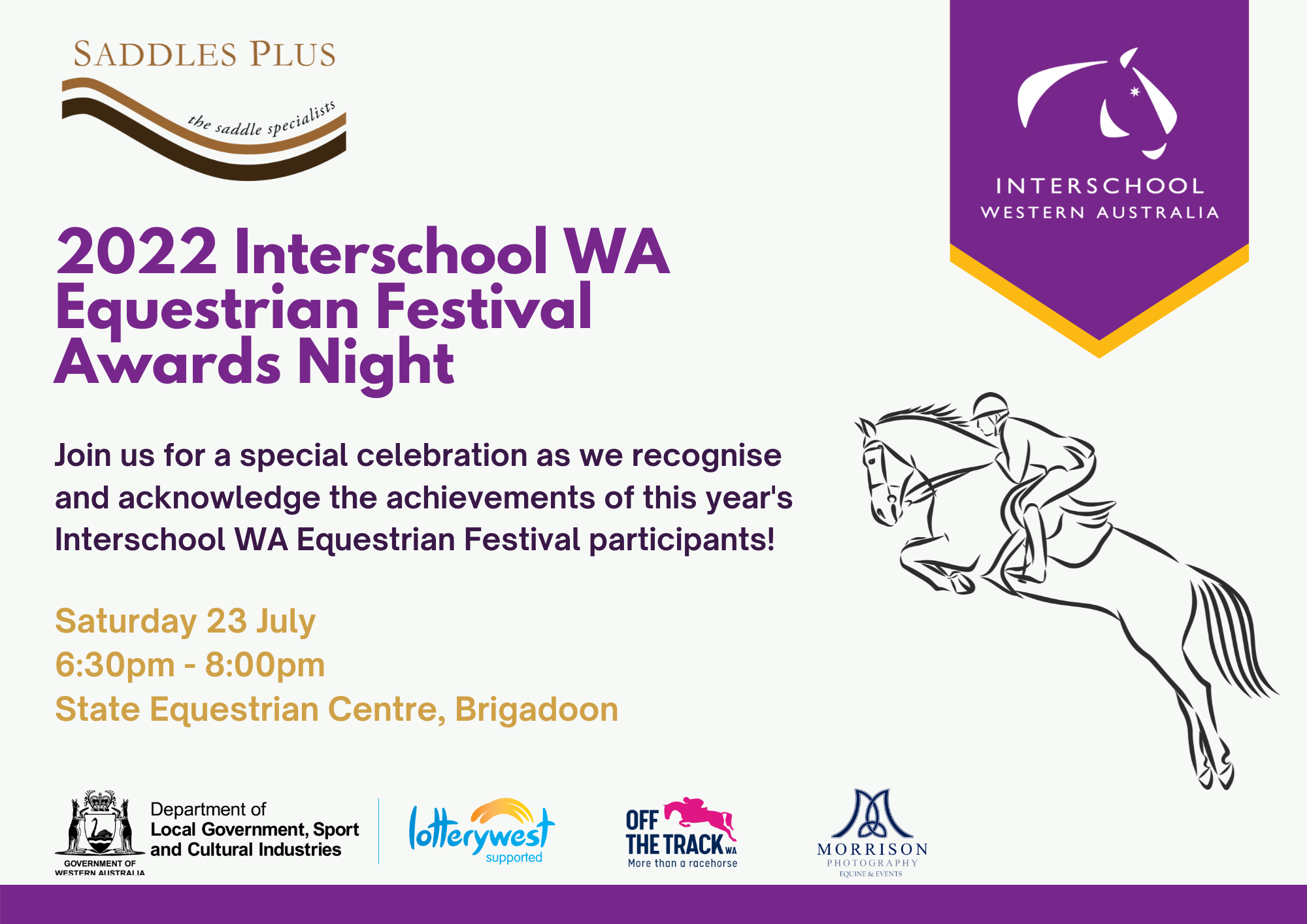 We are pleased to advise that the EWA and Saddles Plus Interschool Equestrian Awards Night will be held at the State Equestrian Centre on Saturday 23 July 2022 at...