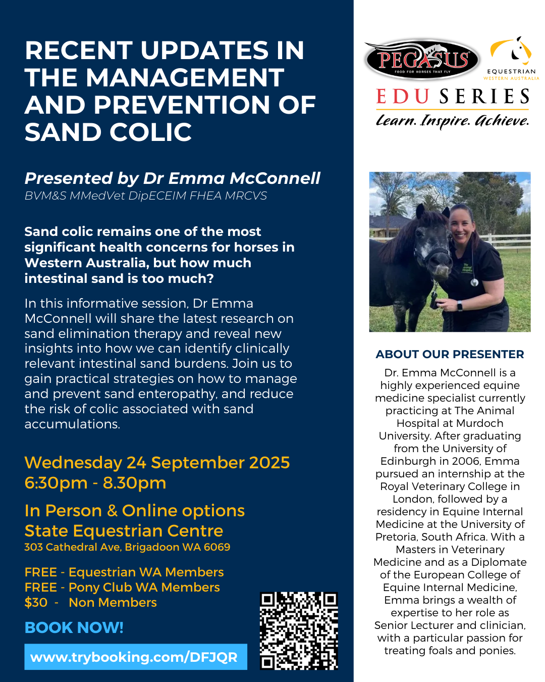In this informative session, Dr Emma McConnell will share the latest research on sand elimination therapy and reveal new insights into how we can identify clinically relevant intestinal sand burdens. Join us to gain practical strategies on how to manage and prevent sand enteropathy, and reduce the risk of colic associated with sand accumulations.