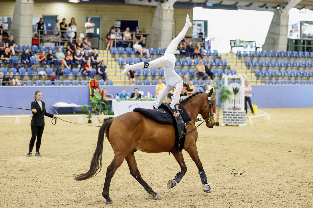 Last month, nine WA vaulters and one horse travelled to Sydney to compete at the National Vaulting Championships at SIEC. Representing two WA clubs—Oakford Vaulting Team and Ripplebrook Equestrian Vaulting Academy (REVA)—the group competed across individual, pas de deux (pairs), and squad events, combining their efforts in both the squad and pairs categories.