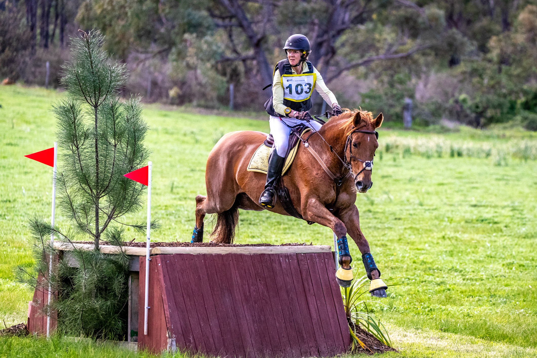 Wooroloo’s undulating cross country courses rode beautifully on Sunday, with excellent ground conditions and bursts of warm sunshine. The courses were designed and built by Alan Campbell in consultation with regular Wooroloo course designer Wayne Copping, who sent maps and notes from his base in South Australia as COVID restrictions prevented him from travelling. Many hours of hard work building the courses alongside Alan Campbell gave Tegan Cook an eye for the best lines, and she was a popular winner of the Gidge Rural EvA80A riding Ben.